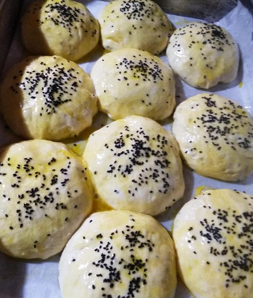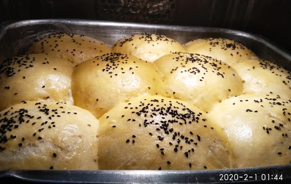 Πρώτα ρίχνω το προζύμι σε μια λεκάνη ,το χλιαρό νερό , τη ζάχαρη , το καλουπάκι της μαγιάς και αλεύρι να γίνει ένας χυλός . Αφήνω το χυλό να φουσκώσει . Μετά προσθέτω το ζεστό γάλα καρύδας, σιγά σιγά αλεύρι, μετά το αυγό λίγο αλάτι. Ζυμώνω, η ζύμη να είναι μαλακή. Ρίχνω και το λάδι και ξαναζυμώνω μέχρι να αισθανθεί ότι κολλάει στο χέρι μου . Αφήνω να φουσκώσει. Έπειτα πλάθω μπαλάκια τα βάζω στο ταψί και αφήνω πάλι να φουσκώσουν . Μετά τα περνάω με αυγό και πασπαλίζω με μαυροκουκι και φούρνο . Δεν μέτρησα ώρα, τα κοιτάμε μέχρι να ροδίσουν. Καλή επιτυχία !