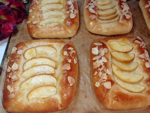 Ένα μήλο την ημέρα τον γιατρό τον κάνει πέρα και η αλήθεια είναι ότι είναι από τα αγαπημένα μας φρούτα, αυτής της εποχής. Σήμερα αποφασίσαμε να τα δοκιμάσουμε μέσα σε αφράτα και μέσα στην γλύκα ψωμάκια, αλειμμένα με μαρμελάδα για επιπλέον γλύκα! Έτοιμα σε 15 λεπτά για το πρωινό ή και το απογευματινό μας.