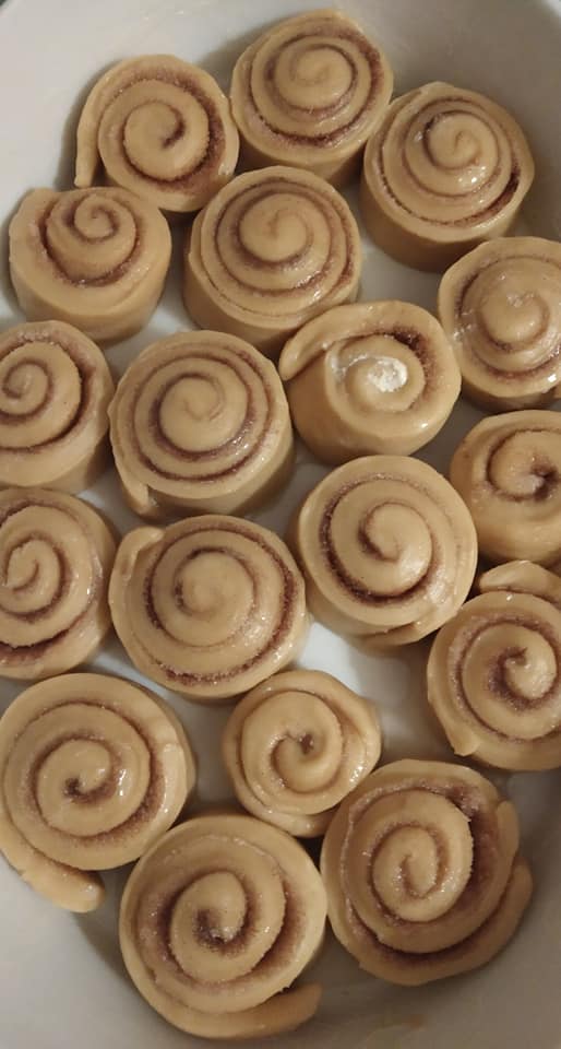 Βουτυρώνουμε ένα ταψί ή πυρέξ. Βάζουμε τα ρολά με σειρά και τα αφήνουμε τουλάχιστον για μισή ώρα ακόμη να φουσκώσουν. Προθερμένουμε τον φούρνο στους 180 αέρα και ψήνουμε για 15-20 λεπτά. Ανάλογα τον φούρνο και το σκεύος, ίσως πάρει και 5 λεπτά παραπάνω.