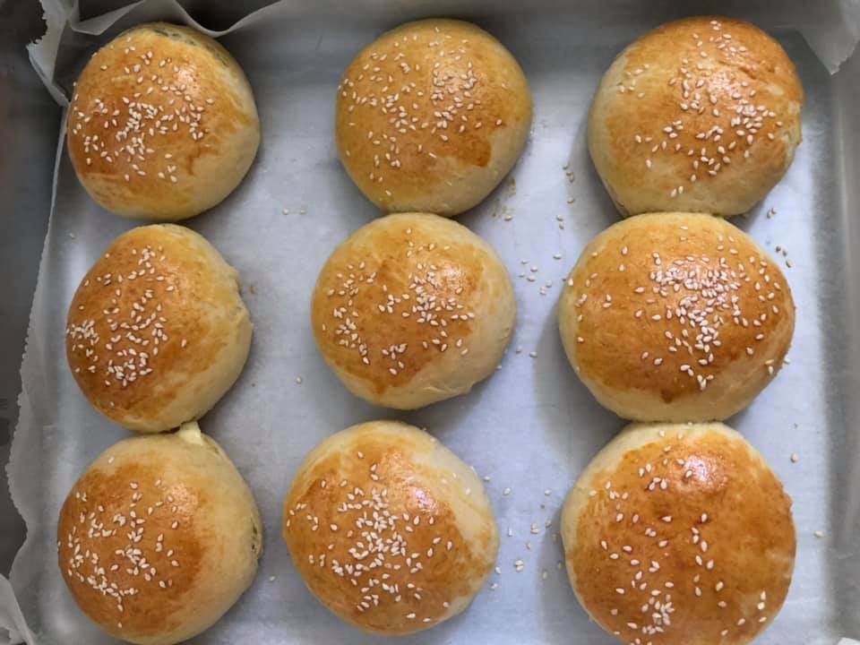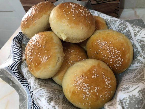 Σε ένα μπολ βάζω την μαγιά, το χλιαρό νερό, την ζάχαρη και ανακατεύω με το σύρμα. Προσθέτω το ηλιέλαιο, το γιαούρτι, το αυγό και ανακατεύω. Τέλος προσθέτω το αλεύρι, το αλάτι και ζυμώνω. Αφήνουμε την ζύμη να φουσκώσει σε ζεστό μέρος για 2 ώρες. Λαδώνουμε τα χέρια μας και ξεκολλάμε την ζύμη από τα τοιχώματα. Πλάθουμε μπαλάκια περίπου 100 γρ και τα βάζουμε σε ταψί με λαδόκολλα.
