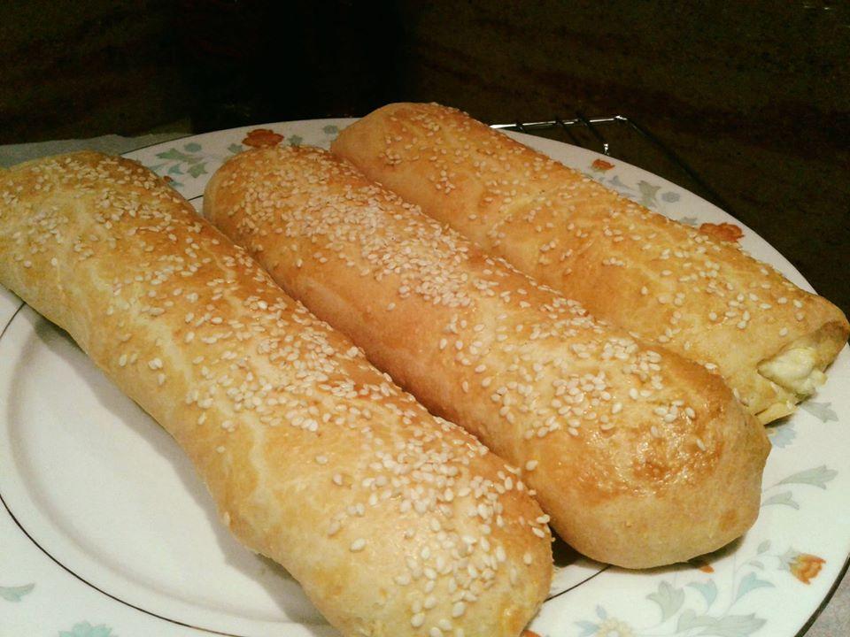 Βάζουμε όλα τα υλικά της ζύμης με τη σειρά σ ένα μπολ και φτιάχνουμε μια εύπλαστη ζύμη να μην κολλάει στο χέρι. Ξεκουράζουμε για μια ώρα στο ψυγείο. Ανοίγουμε το φύλλο και κόβουμε παραλληλόγραμμα κομμάτια γεμίζουμε με τη γέμιση, αλείφουμε με αυγό και ψήνουμε ώσπου να πάρουν χρώμα.