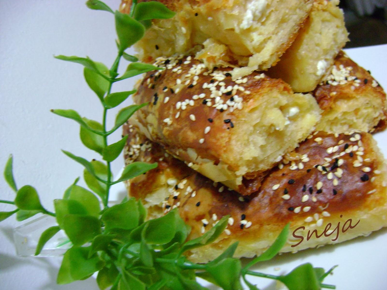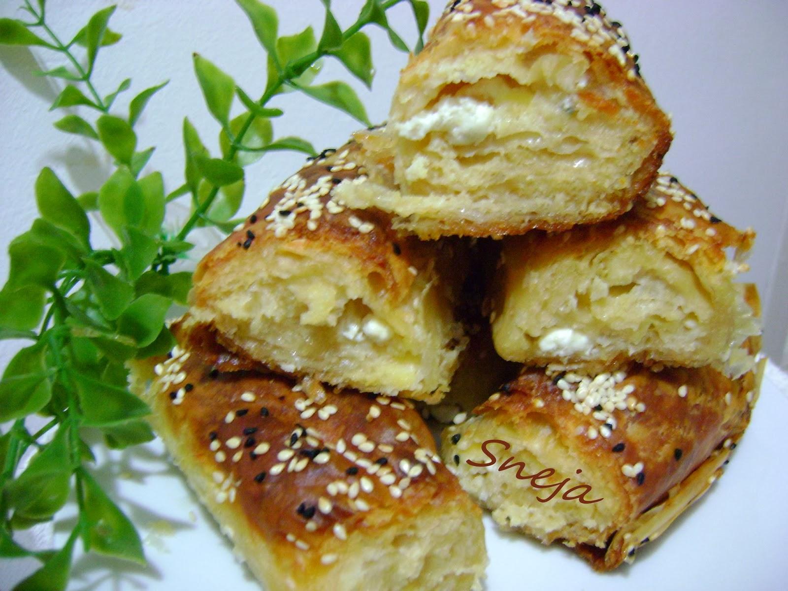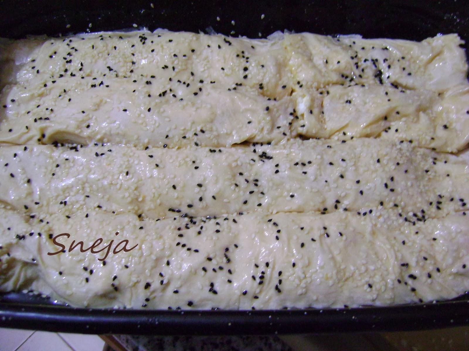 Χτυπάμε τα αυγά με το γιαούρτι και προσθέτουμε το λάδι και το καλαμποκάλευρο με το μπέικιν. Παίρνουμε ένα φύλλο και με ένα πινέλο απλώνουμε πάνω του το μείγμα των αυγών. Από πάνω του απλώνουμε δεύτερο φύλλο και το αλείφουμε και αυτό. Ίδια διαδικασία με άλλα δύο φύλλα. Στο τέταρτο φύλλο πασπαλίζουμε τριμμένη φέτα και τυλίγουμε και τα τέσσερα φύλλα μαζί σε ρολό το οποίο βάζουμε σε λαδωμένο ταψί. Συνεχίζουμε την ίδια διαδικασία με τα υπόλοιπα υλικά. Αλείφουμε με ηλιέλαιο τα ρολά πασπαλίζουμε με σουσάμι και μαυροσούσαμο και χωρίζουμε με ένα μαχαίρι σε κομμάτια.