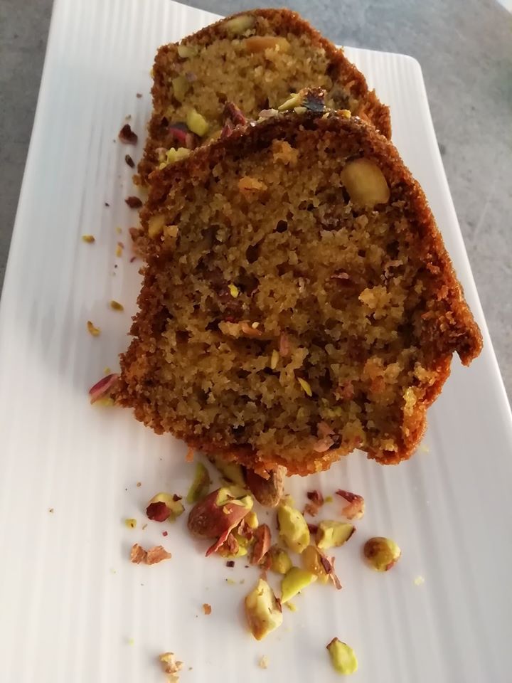Κέικ με φυστίκια Αιγίνης και άρωμα λεμονιού. Το απολυτά αρωματικό κέικ λεμονιού εμπλουτισμένο με ψιλοκομμένα φιστίκια Αιγίνης που του χαρίζουν μια τραγανή υφή. Αφράτο, βουτυρένιο με πλούσια γεύση φινετσάτο άρωμα και τα φυστίκια Αιγίνης να κυριαρχούν, θα σας ξετρελάνει.