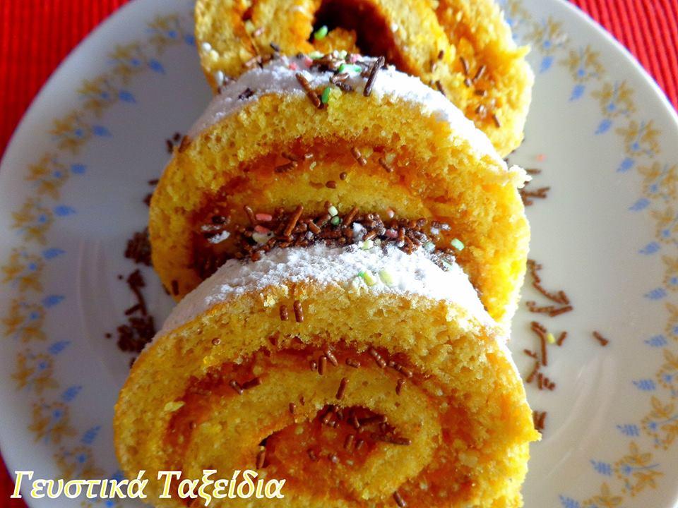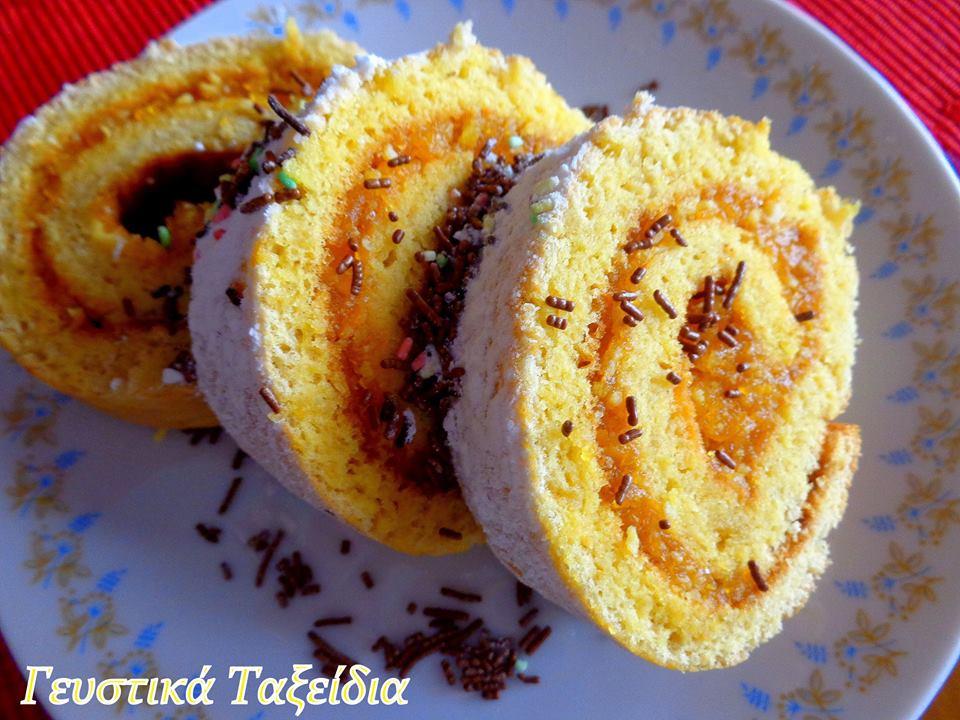 4) Ξεδιπλώνετε τό παντεσπάνι καί πετάτε τό λαδόχαρτο. Απλώνετε τήν χλιαρή μαρμελάδα πάνω στό παντεσπάνι μέ κουτάλι σέ όλη την επιφάνεια του καί τό ξανατυλίγετε ρολό. Πασπαλίζετε μέ ζάχαρη άχνη, τρούφα, πολύχρωμες σοκολατένιες καραμελίτσες καί ότι άλλο σάς αρέσει.