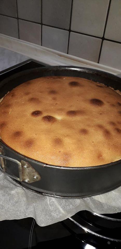(Το ταψί που χρησιμοποίησα ήταν 25 εκ. με τσέρκι, έβαλα αντικολλητικό χαρτί στη βάση και άλειψα πολύ καλά τα τοιχώματα με βούτυρο. Αν θέλετε τη βάζετε σε ταψάκι για τάρτες.)