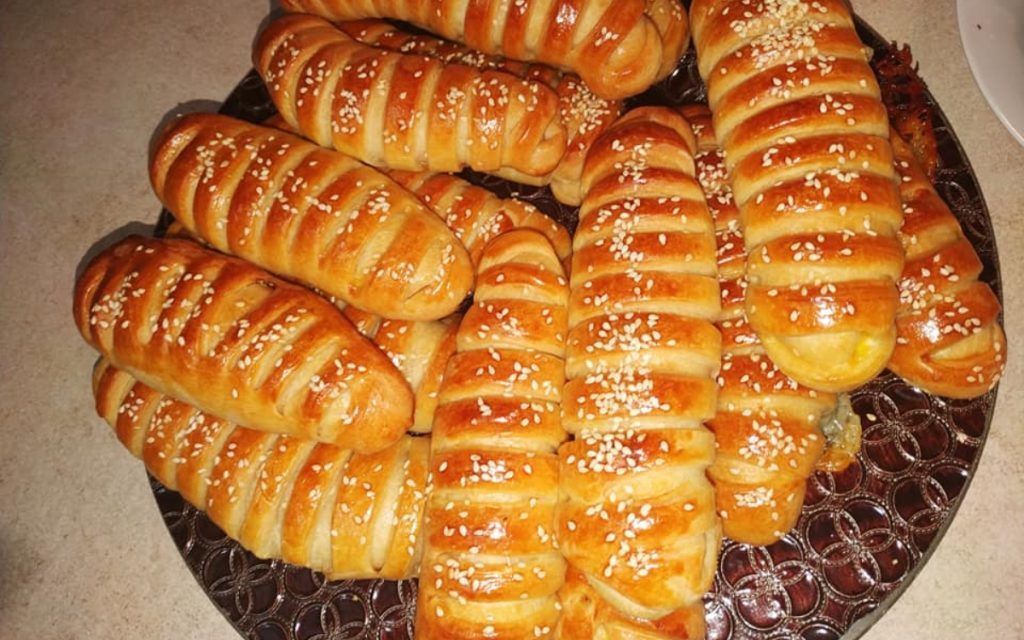 Ανοίγουμε τα ζυμαράκια με τα χέρια μας σε κυκλικό σχήμα. Στην μία άκρη της ζύμης προσθέτουμε τη γέμισή μας, είτε αλμυρή είτε γλυκιά και στην άλλη άκρη χαράζουμε κάθετες γραμμές στη ζύμη. Τυλίγουμε τη ζύμη σε κύλινδρο σφραγίζοντας τη έχοντας τα κοψίματα στο επάνω μέρος.
