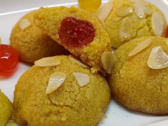 Συνταγή για σιροπιασμένες σιμιγδαλένιες γεμιστές με κεράσια, για να συνοδεύσουν το καφεδάκι μας ή το κλείσιμο ενός δείπνου την Μεγάλη Εβδομάδα, χωρίς λάδι, από τη φίλη μας Efi Efi.