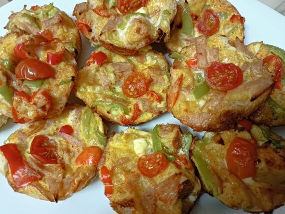 Συνταγή για αλμυρά κεκάκια με το ψωμί που περίσσεψε για κολατσιό στο σχολείο. Αφράτα cupcakes με το ψωμί που περίσσεψε, τυριά που λιώνουν, γαλοπούλα, πιπεριές και φέτα, για το ταπεράκι στο ολοήμερο ή και το σχολικό κολατσιό το πρωί! Μπορείτε να χρησιμοποιήσετε σπιτικό ζαμπόν γαλοπούλας για πιο υγιεινά. Μοιάζουν με ομελετίνια, είναι αφράτα και τα παιδιά σίγουρα θα σας τα ζητάνε συνέχεια. Μία συνταγή της φίλης μας Δήμητρα Γουλάπτση.
