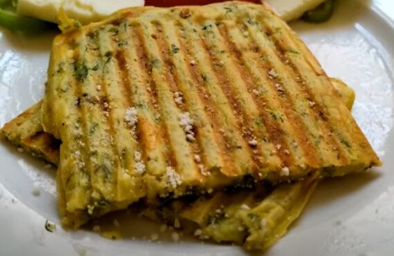 Βάζουμε την τοστιέρα να κάψει. Μόλις κάψει, περνάμε την τοστιέρα με λίγο ελαιόλαδο, χρησιμοποιώντας ένα πινέλο. Ρίχνουμε το μείγμα στην τοστιέρα και μετά από 5-7 λεπτά γυρνάμε την βάφλα από την άλλη. Μόλις πάρει χρώμα και από τις δύο μεριές είναι έτοιμη.