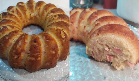 Η δοσολογία του κέικ που βλέπουμε στις παρακάτω φωτογραφίες έγινε με κλασική κούπα του Νεσκαφέ. Μπορούμε να χρησιμοποιήσουμε φόρμα σιλικόνης και να μην χρειαστεί να την βουτυρώσουμε. Μπορούμε αν θέλουμε να χρησιμοποιήσουμε πάριζα αντί για ζαμπόν.