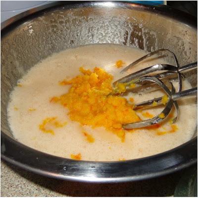 Βάζουμε σε μπολ βαθύ το λάδι με την ζάχαρη ,χτυπάμε μέχρι να ασπρίσει με το μιξεράκι χειρός . Προσθέτουμε το πολτοποιημένο ολόκληρο πορτοκάλι ,τις βανίλιες και τα αυγά και ξαναχτυπάμε ,Τέλος προσθέτουμε το αλεύρι με το μπέκιν πάουντερ και χτυπάμε στην πολύ μικρή ταχύτητα ίσα ίσα να ανακατευτεί το μείγμα