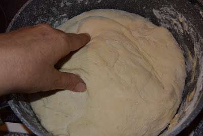 Υλικά 1 κιλό αλεύρι για όλες τις χρήσεις -περισσεύει λίγο 1 φακελάκι μαγιά ξερή νερό χλιαρό περίπου 1 και 1/2 ποτήρι χλιαρό νερό 1 κουταλιά σούπας λάδι λίγο αλάτι φέτα τριμμένη με το χέρι όση θέλετε ελιές καθαρισμένες από το κουκούτσι όσες θέλετε κι ότι είδος έχετε.