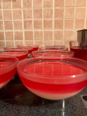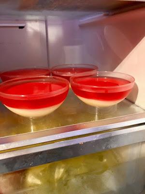 Ετοιμάζουμε το ζελέ όπως το γράφει στην συσκευασία και τα 2 φακελάκια βάζοντας σε διπλή δόση τα υλικά γιατί επάνω γράφει για ένα φακελάκι . Το αφήνουμε 10 λεπτάκια να κρυώσει και με μία κουτάλα και προσεκτικά μην βουλιάξει η κρέμα αδειάζουμε πάνω από την κρέμα μέχρι επάνω στο μπολ. Τα αφήνουμε στο ψυγείο να παγώσουν και σερβίρουμε ..είναι φανταστικά απλά εύκολα δροσερά !!!