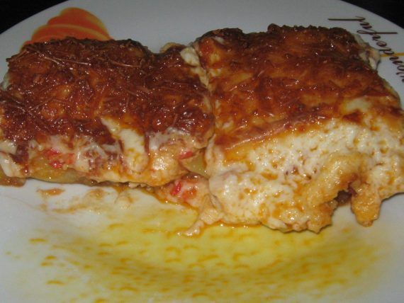 Ξεχωριστός μουσακάς χωρίς μελιτζάνες με πλούσια τρεμουλιαστή μπεσαμέλ και κοκκινιστό φιλέτο κοτόπουλο με πιπεριές αντί για κιμά. Αν δεν σας αρέσει ο κιμάς και προτιμάτε το κοτόπουλο τότε πρέπει να δοκιμάσετε αυτόν τον χορταστικό και νόστιμο μουσακά. Εμείς τον φτιάχνουμε πολύ συχνά όταν περισσεύει φιλέτο κοτόπουλο ή ψαχνό γενικά κι επειδή δεν το τρώμε σκέτο, το βάζουμε είτε σε μουσακά, είτε σε σουφλέ είτε σε ριζότο με λαχανικά.