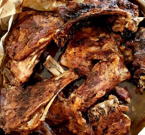 Έπλυνα το αρνάκι το σκούπισα με χαρτοπετσέτα, το αλατοπιπέρωσα και έβαλα στο μπλέντερ 4 σκελίδες σκόρδο, μουστάρδα, δεντρολίβανο, μελί, λάδι όλα μαζί και άλειψα το όλο το αρνάκι. Το πασπάλισα με λίγο μπούκοβο και λίγο ρίγανη. Προθέρμανα τον φούρνο στους 180 βαθμούς και το έψησα περίπου 2 ώρες πάνω σε λαδόκολλα το σκέπασα και με λαδόκολλα που έκανα λίγες τρυπούλες με μαχαιράκι. Έτοιμο και λουκούμι!