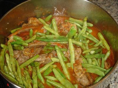 Όταν αρχίσει να βράζει προσθέτουμε τα φασολάκια, και μόλις ξαναρχίσει να βράζει χαμηλώνουμε τη φωτιά και αφήνουμε να σιγοψηθεί για 1 ½ ώρα τουλάχιστον.