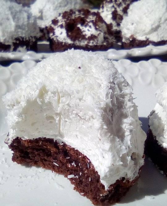 Ατομικά γλυκά με σοκολατένιο παντεσπάνι, κρέμα τυριού και πασπαλισμένα με ινδοκάρυδο! Με αυτήν την εύκολη συνταγή μπορείτε να φτιάξετε αυτά τα ατομικά γλυκά, σαν πάστες με ινδοκάρυδο, και να τις προσφέρετε σαν κέρασμα σε επίσημα τραπέζια, γιορτές, αλλά και για να τις απολαμβάνετε με την οικογένεια!