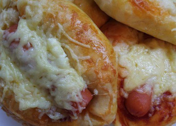 Βάζουμε κέτσαπ μουστάρδα ή Φιλαδέλφεια στη βάση και μετά το λουκάνικο και τυρί από πάνω. Ψήνουμε σε αντιστάσεις στους 180 βαθμούς μέχρι να ροδίσουν. Η ζύμη κάνει για πίτσα, τυροπιτάκια και ότι άλλο θέλετε.