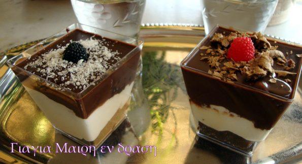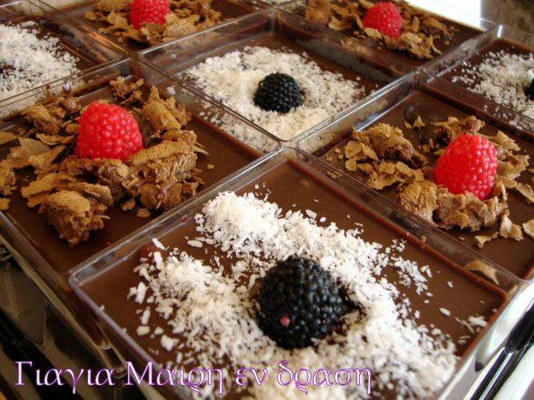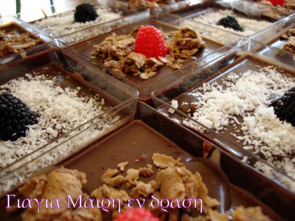 για να κάνω ατομικά παστάκια κόβω στο μέγεθος του ποτηριού που θέλω να κάνω το παστάκι μου και βάζω την κρέμα και από πάνω την σοκολάτα!!! ο στολισμός είναι στην δίκη σας φαντασια!!!