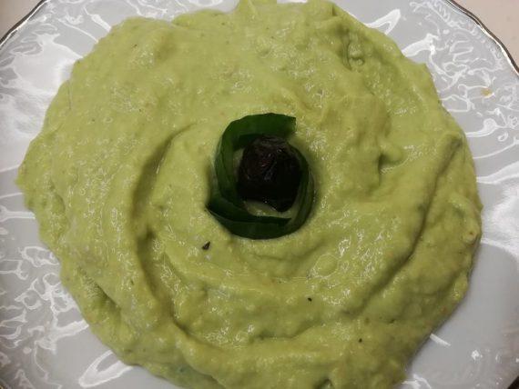 • 1 ώριμο αβοκάντο • 1 μέτριο αγγούρι • 1 κ.σ. λευκός ταραμάς • Μια σκελίδα σκόρδο • Μισό λευκό κρεμμύδι • Πιπέρι • Σκόνη σκόρδου