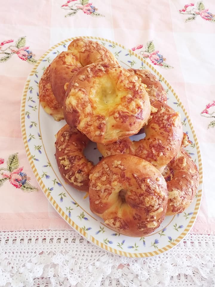 Τα ψήνουμε πάνω σε λαδόκολλα και τα περνάμε με ένα πινέλο με χτυπημένο κρόκο αυγού και λίγο γάλα. Τα πασπαλίζουμε με γραβιέρα τριμμένη ή σουσάμι και τα ψήνουμε σε προθερμασμένο φούρνο στους 170 βαθμούς Κελσίου για μισή ώρα περίπου μέχρι να ροδίσουν από πάνω και να ψηθούν ομοιόμορφα.