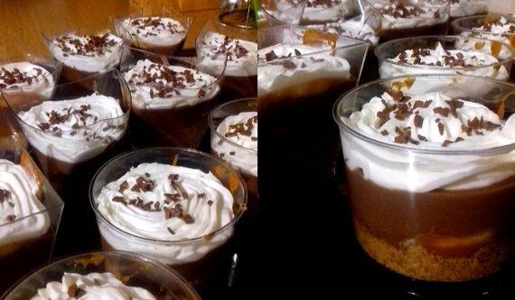 Στην αρχή λιώνουμε το βούτυρο. Ρίχνουμε στο λιωμένο βούτυρο τα τριμμένα μπισκότα μαζί με την κουβερτούρα κομμένη σε κομματάκια και ανακατεύουμε μέχρι να λιώσει η κουβερτούρα. Στην συνέχεια βάζουμε το μείγμα μας μπολάκια.