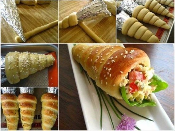 Για τα χωνιά φτιάχνουμε καλούπι με ένα απλό Χαρτόνι και αλουμινόχαρτο Υλικά: 1/2 φλιτζάνι γάλα 1/2 φλιτζάνι νερό 3 κουταλιές της σούπας λάδι 1/4 φλιτζάνι ζάχαρη 1 χτυπημένο αυγό 1 1/2 κουταλάκι του γλυκού αλάτι 2 1/4 κουταλάκι του γλυκού στιγμιαία μαγιά 3 1/2 έως 4 φλυτζάνια αλεύρι (χρησιμοποιείται μόνο 3 1/2)