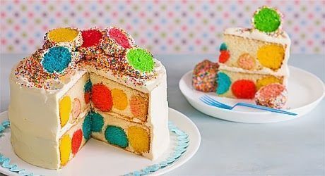 Προσθέτουμε λαδόκολλα σε ένα ταψάκι στρογγυλό προσθέτουμε τις χρωματιστές μπάλες κολλητά τη μια δίπλα στην άλλη και ρίχνουμε το υπόλοιπο μείγμα από το κέικ προσέχοντας να πάει παντού. ψήνουμε στο φούρνο για 30 λεπτά ακόμη το δοκιμάζουμε αν έχει ψηθεί με μια οδοντογλυφιδα.