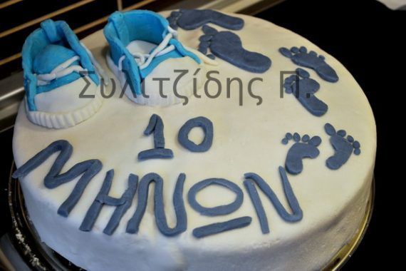 Μην διστάσετε να δώσετε ένα κομμάτι στο μικρό σας να δοκιμάσει, εξάλλου τόση προσπάθεια έκανε για να περπατήσει! Το αξίζει! Παρακάτω δείχνουμε βήμα βήμα πώς φτιάχνονται οι πατουσίτσες και τα ζαχαρωτά παπουτσάκια. Στην αρχή χρωματίζουμε τη ζαχαρόπαστα (με χρώματα ζαχαροπλαστικής) σύμφωνα με τα χρώματα της αρεσκείας μας … μπλέ για αγοράκι, ρόζ για κοριτσάκι όπως συνηθίζεται και φυσικά ότι άλλο θέλουμε … κόβουμε τα πατρόν για τις πατουσίτσες και τα τοποθετούμε πάνω στο ζυμάρι της ζαχαρόπαστας …