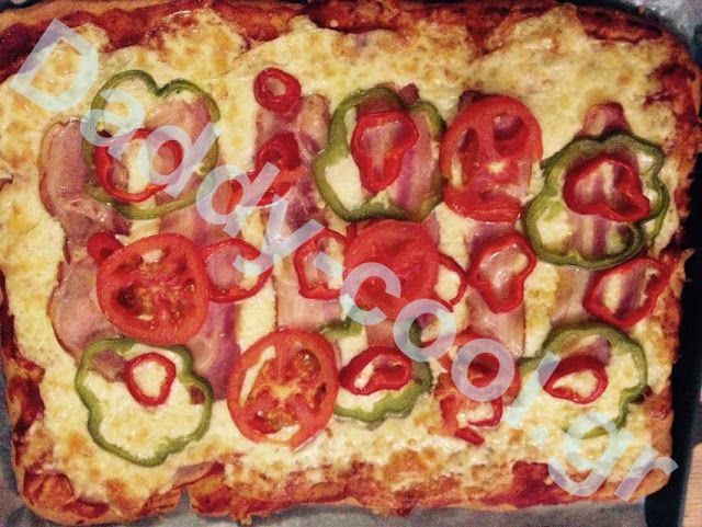 Για ενα ταψί Πίτσα Για τη ζυμη 1/2 κιλο αλευρι 1 φακελακι μαγια 1/3 φλυτζανιου λαδι 250ml χλιαρο νερο 1 κ.γλ αλατι 1 κ.γλ ζαχαρη Υλικα για την Πίτσα 500γρ αναμεικτα γλυκα τυρια(γκουντα,ενταμ,μοτσαρελα,τσενταρ,εμμενταλ η οτι προτιμαμε) 10 φετες ζαμπον η γαλοπουλα καπνιστη 4-5 φετες μπεικον 2 πιπεριες (πρασινη,κοκκινη σε ροδελες) 1 μικρη κονσερβα μανιταρια η 3-4 φρεσκα σε κομμενα στα τεσσερα 1 μεσαια ντοματα σε ροδελες χωρις ζουμια