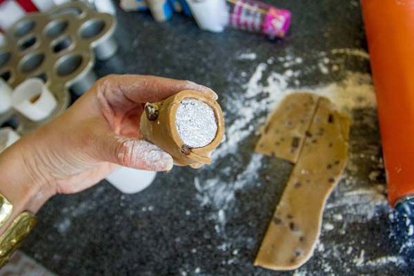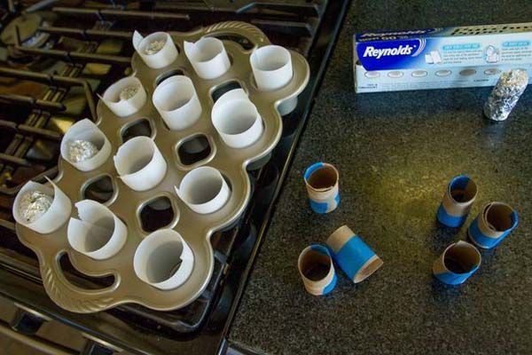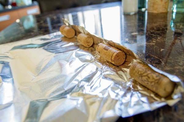 Για το εσωτερικό των ποτηριών, χρησιμοποίησε φελλούς που είχε τυλίξει με αλουμινόχαρτο.