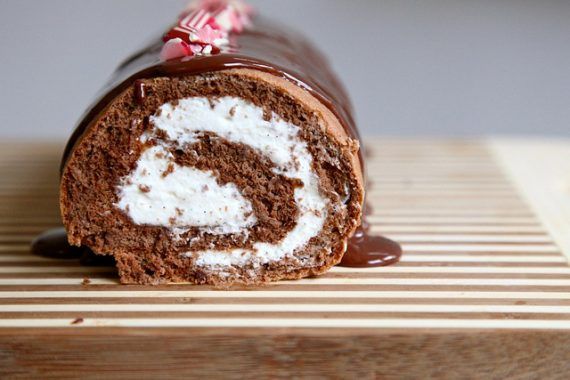 Αν έχουμε πολύ δυνατό φούρνο, προσέχουμε να μην ψηθεί πολύ, διότι αν σφίξει εντελώς θα διαλύεται. Ύστερα το αναποδογυρίζουμε πάνω σε μια πετσέτα, την οποία έχουμε προηγουμένως πασπαλίσει με λίγη άχνη, και αμέσως το τυλίγουμε σε ρολό και το αφήνουμε να κρυώσει εντελώς.