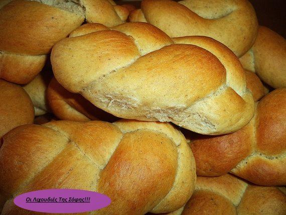 Χωρίς να αφήσω την ζύμη να φουσκώσει πλάθω κουλουράκια και τα βάζω σε ταψί με λαδόκολλα και αφήνω να φουσκώσουν 2-3 ώρες τώρα το καλοκαίρι και παραπάνω ώρες το χειμώνα.