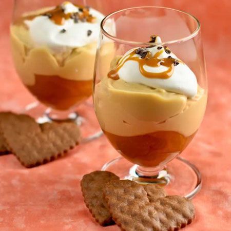 3. Μοιράστε τη κρέμα στα ποτήρια, διακοσμήστε τη με λίγο σαντιγί και περιχύστε την με το Topping.