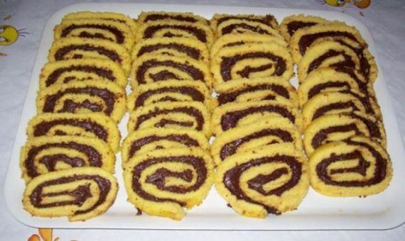 * Προαιρετικά, προσθέσουμε μια χούφτα καλοψημένα και σπασμένα αμύγδαλα ή φουντούκια επάνω στη γέμιση, κι έπειτα να τυλίξουμε σε ρολλό. Επίσης μπορείτε να το γεμίσετε με μαρμελάδα αντί για μπισκότο.