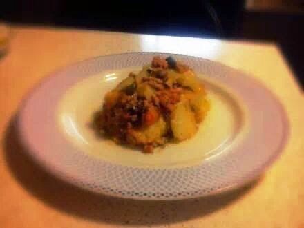 Εκτέλεση Βράζουμε τις πατάτες και τα κολοκυθάκια μέχρι να μαλακώσουν ελαφρά. Τα αφαιρούμε ,ρίχνουμε αλάτι πιπέρι και την φρέσκια ρίγανη Ανακατεύουμε τον κιμά με την κάπαρη και το μισό τυρί .Αν ο κιμάς έχει στεγνώσει τον ζεσταίνουμε με λίγο νεράκι, για να γίνει πιο ζουμερός Αλείφουμε ένα πυρέξ με το ελαιόλαδο και στρώνουμε ως εξής: Πατάτα-κολοκυθάκι-κιμά Μόλις μας τελειώσουν τα υλικά ρίχνουμε το υπόλοιπο τυρί και φρεσκοτριμμένο πιπέρι Ψήνουμε σε αέρα στους 180 για περίπου 30-45 λεπτά (ανάλογα με τον φούρνο μας)