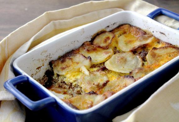 Υλικά Όσος κιμάς περισσέψει από μακαρόνια με κιμά(200-400 gr). 5-6 πατάτες κομμένες σε λεπτές στρογγυλές φέτες καθαρισμένες 4 κολοκυθάκια κομμένα σε λεπτές μακρόστενες φέτες 250 gr Λαδοτύρι Μυτιλήνης ή οποιοδήποτε τυρί της αρεσκείας μας τριμμένο 2 κ.σ κάπαρη 2 κ.σ ελαιόλαδο Φρέσκια ρίγανη Αλάτι -πιπέρι