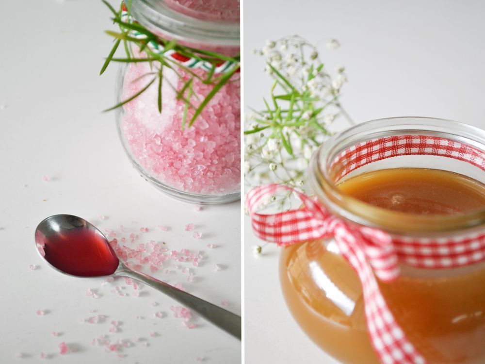 Ανοίγω την ενότητα των χειροποίητων δώρων για τις γιορτές με αυτές τις δύο εύκολες και γρήγορες προτάσεις, σως καραμέλας και θαλασσινό αλάτι χρωματισμένο με χυμό ροδιού. Διαλέξτε όμορφα βαζάκια, στολίστε τα με κορδέλες, αφιερώστε ελάχιστο χρόνο για την εκτέλεση των συνταγών και έχετε δύο πρωτότυπα δώρα φτιαγμένα από τα χεράκια σας.