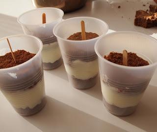 Στήνουμε τα γλυκάκια μας βάζοντας τον μικρό δίσκο από το brownie μέσα στο ποτήρι, συνεχίζουμε με 2 – 3 κουταλιές παγωτό και τελειώνουμε με τον μεγαλύτερο δίσκο του brownie. Στο τέλος μπήγουμε ενα ξυλάκι για παγωτά.