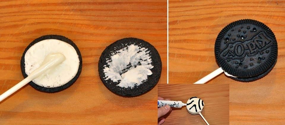 ορεο μπισκότα και ορεο μίνι , σοκολάτα κουβερτούρα η γάλακτος λίγη σαντιγί για το κόλλημα ,ξυλάκια για γλειφιτζούρια και ακολουθήστε τα βήματα της εικόνας!