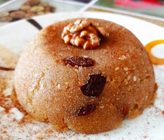 Εκτέλεση για τον σιμιγδαλένιο χαλβά με σταφίδες και κουκουνάρι