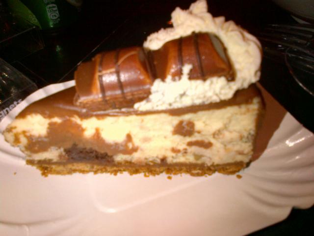 - Για το γλάσο σοκολάτας:Βάζετε σε κατσαρόλα, σε χαμηλή θερμοκρασία τη κομματιασμένη σοκολάτα και προσθέτετε και τη κρέμα γάλακτος. Αφήνετε τη σοκολάτα να λιώσει ανακατεύοντας πότε πότε. Μόλις είναι έτοιμο το γλάσο το αφήνετε λίγο να κρυώσει και μετά περιχύνετε το cheesecake. Κόβετε σε κομματάκια τις 2 υπόλοιπες μπάρες Kinder Bueno γαρνίρετε το cheesecake και το βάζετε πάλι στο ψυγείο να κρυώσει. Μόλις κρυώσει κόψτε σε μερίδες, σερβίρετε και απολαύστε.