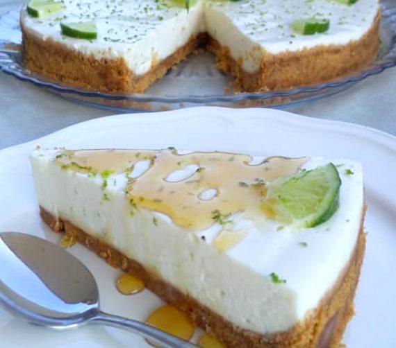 Συνταγή για Cheesecake με lime. Ένα γευστικότατο και πρωτότυπο cheesecake με έντονη γεύση lime και μελιού.