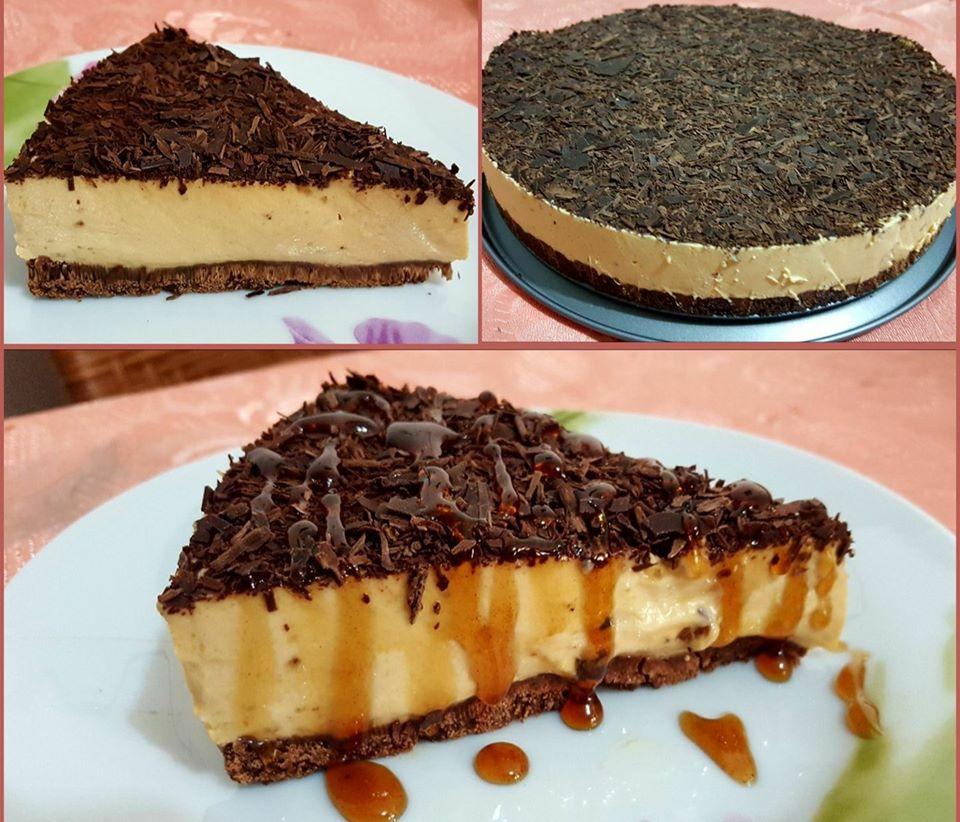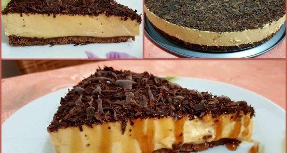 2,5 πακέτα μπισκότα σοκολάτας 3 κ.σ. γεμάτες βούτυρο ( το λιωνουμε) 600 γρ. Τυρί κρέμα 1 ζαχαρουχο καραμελωμένο 5 μπανάνες γινωμένες λιωμένες 1 κ.γ. χυμο λεμονι 3 φύλλα ζελατίνης 2 κ.σ. νερο 1 φακ. Νιφάδες κουβερτούρας Σιρόπι καραμέλας ( προαιρετικα )