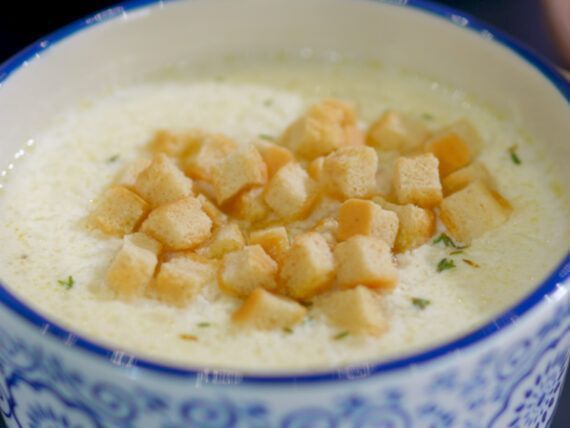 Αρωματική γιαουρτόσουπα με αρωματισμένο ελαιόλαδο με θυμάρι και βελούδινη υφή. Ο Παναγιώτης Παπαδάκης μας δείχνει μία θρεπτική σούπα για μικρούς και μεγάλους, που είναι σκέτο βάλσαμο και μπορούμε να την φτιάξουμε και για το ολοήμερο.