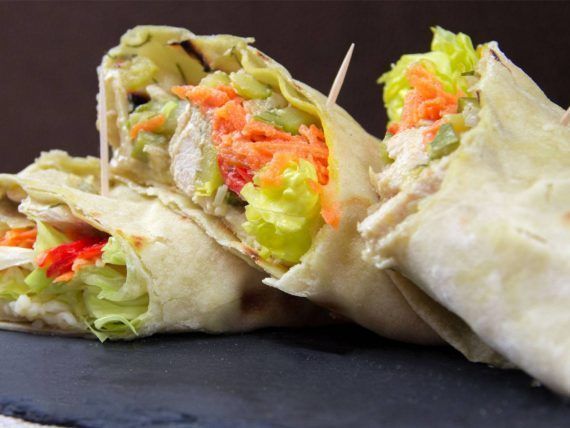 Παίρνουμε μία τορτίγια και στην μέση βάζουμε λίγη από την γέμιση με το κοτόπουλο. Στην συνέχεια προσθέτουμε λίγες κόκκινες πιπεριές κομμένες σε ροδέλες, τριμμένο καρότο και ψιλοκομμένο μαρούλι. Στο τέλος προσθέτουμε και τριμμένο τυρί της αρεσκείας μας, ρολάρουμε και απολαμβάνουμε.