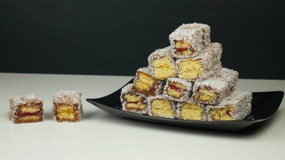 Οδηγίες0 από 9 βήματα ολοκληρώθηκαν Χτυπάμε τα αυγά με την ζάχαρη μέχρι που να ασπρίσουν. Προσθέτουμε το σπορέλαιο, το νερό, λίγο λίγο το αλεύρι και ανακατεύουμε. Τέλος προσθέτουμε τις βανίλιες και ανακατεύουμε μέχρι να γίνει ζύμη. Απλώνουμε το μείγμα σε φόρμα 28×20 εκατοστά και ψήνουμε στους 180 βαθμούς μέχρι να ροδίσει. Όταν κρυώσει κόβουμε το κέικ στην μέση κατά μήκος και κατά πλάτος. Αφαιρούμε τα καπάκια και απλώνουμε μαρμελάδα. Τοποθετούμε τα καπάκια στην αρχική τους θέση και κόβουμε σε κομμάτια. Αναμειγνύουμε το γάλα με την ζάχαρη και το κακάο. Βουτάμε περιμετρικά τα κεκάκια στο κακάο και τα περνάμε από το ινδοκάρυδο.