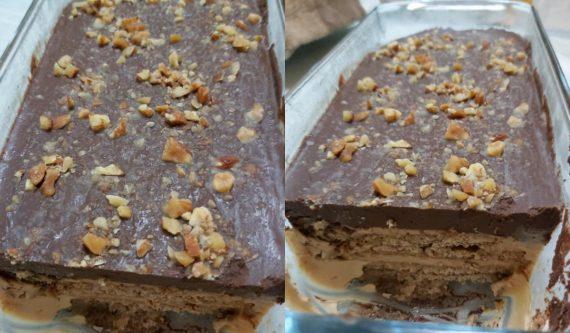 Chocotorta: Συνταγή για γλυκό από την Αργεντινή. Δροσιστικό γλυκό ψυγείο με καραμελωμένο ζαχαρούχο, μπισκότα και γκανάζ σοκολάτας.