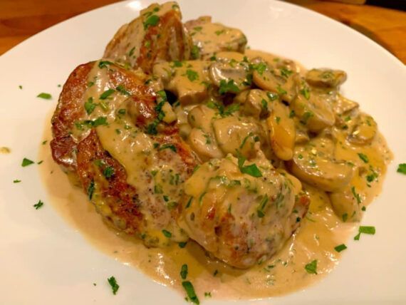 Συνταγή για ζουμερό φιλέτο χοιρινο αλά κρεμ με μανιτάρια για μεσημεριάνο και βραδινό με πατάτες φούρνου ή ρύζι