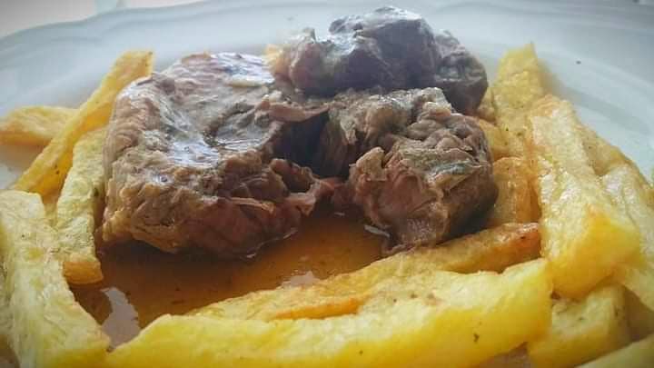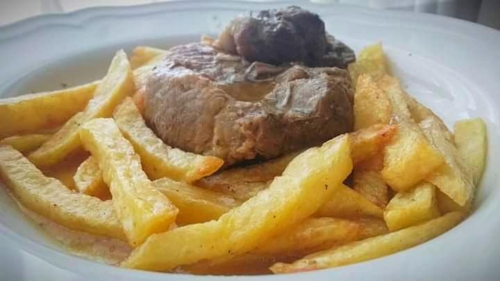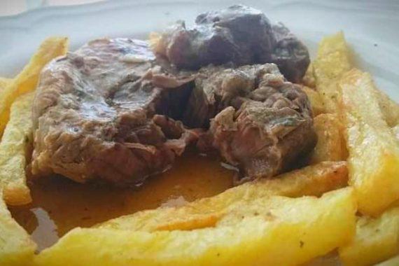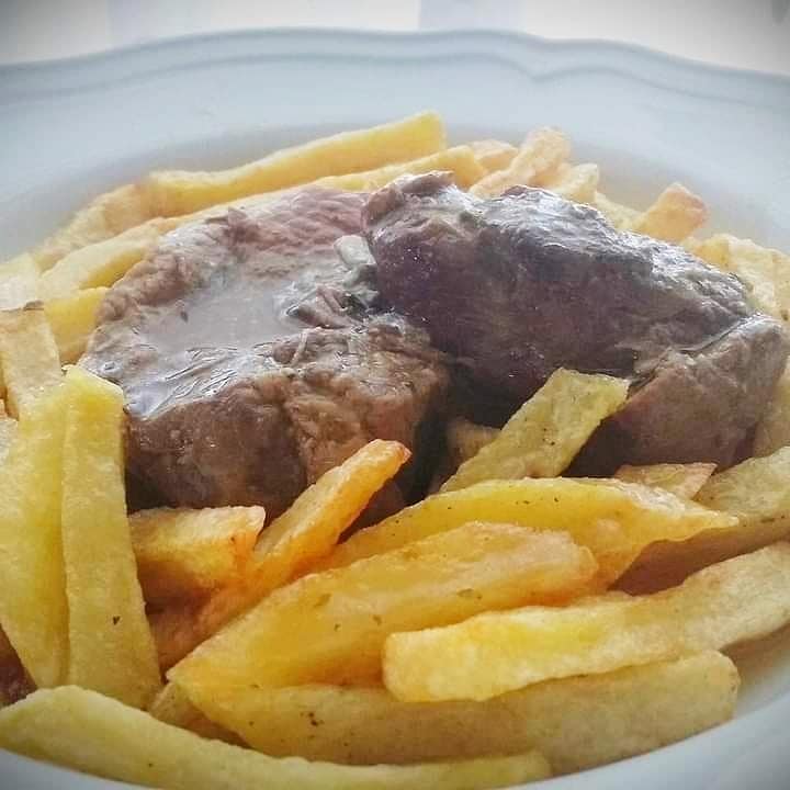 Σε πολύ λίγο νερό διαλύουμε το κορν φλάουρ και προσθέτουμε το μείγμα στο φαγητό μας. Ανακινούμε την κατσαρόλα και αφήνουμε το φαγητό μας να πάρει 2-3 βράσεις σε δυνατή φωτιά. Σερβίρουμε με τηγανιτές πατάτες και μπόλικη σάλτσα.